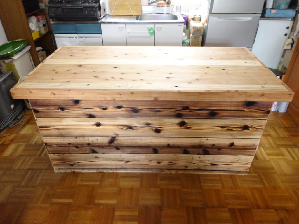天板のカバーを載せて、側面も焼杉の羽目板で化粧仕上げ。