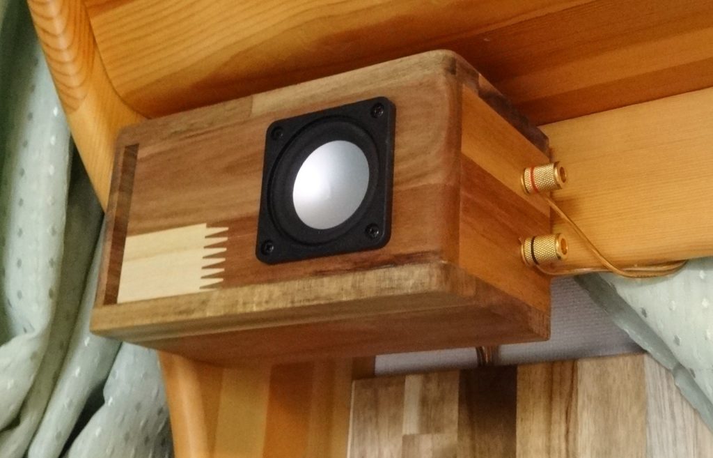 スピーカーは、Tangband 5cmユニットW2-2243S を装着して、かなり小型の