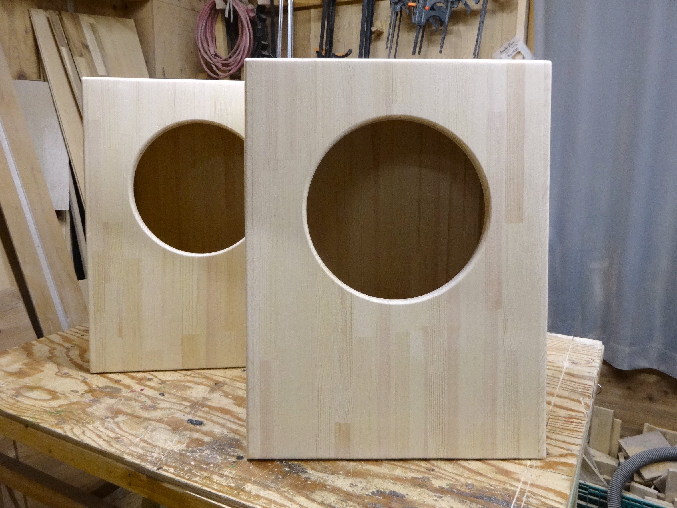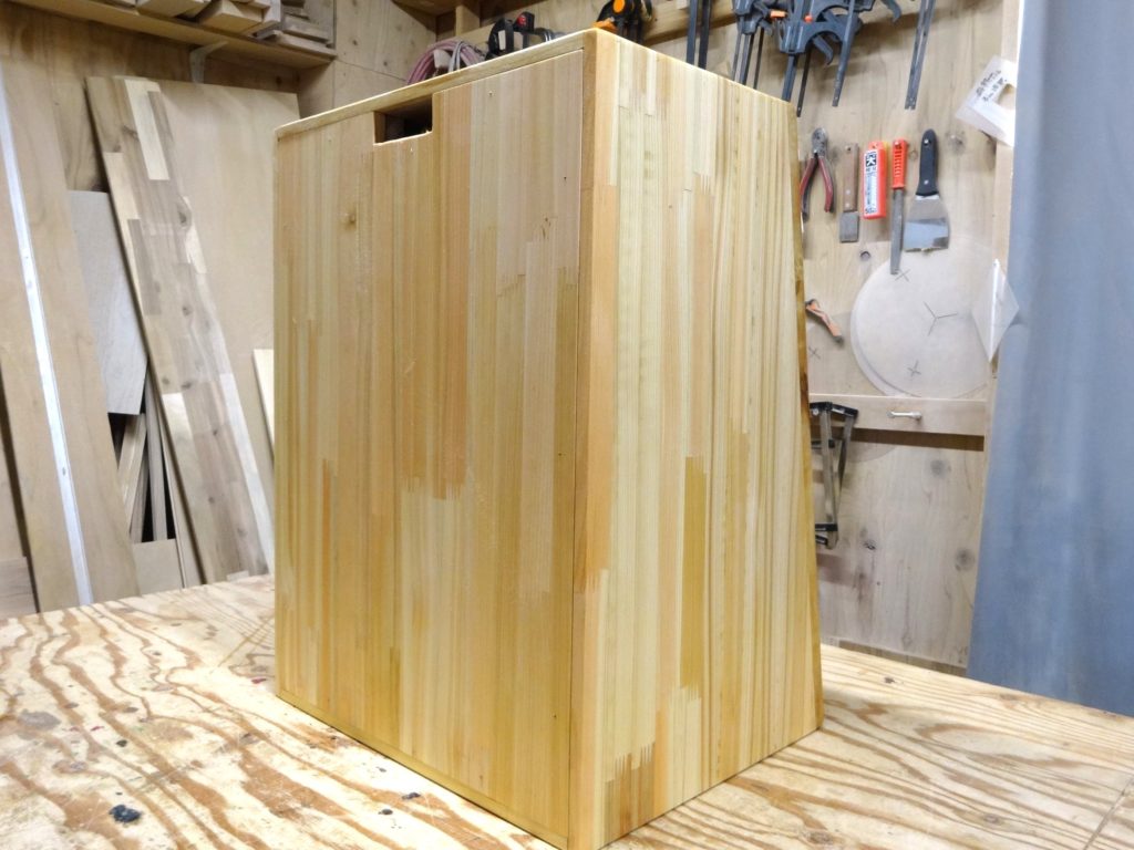 仕様としては、赤松集成材t12mm、バッフル板のみt20mmを使用。