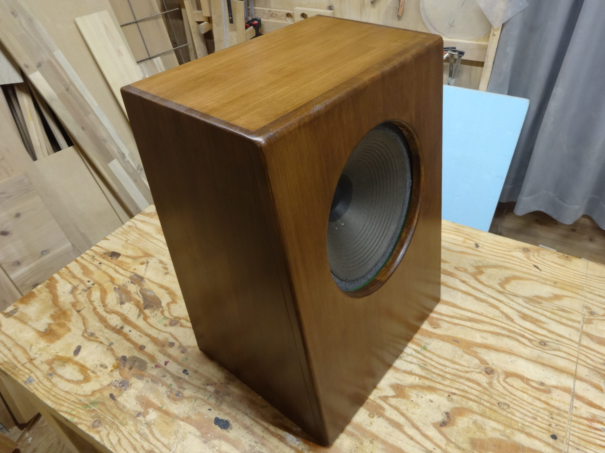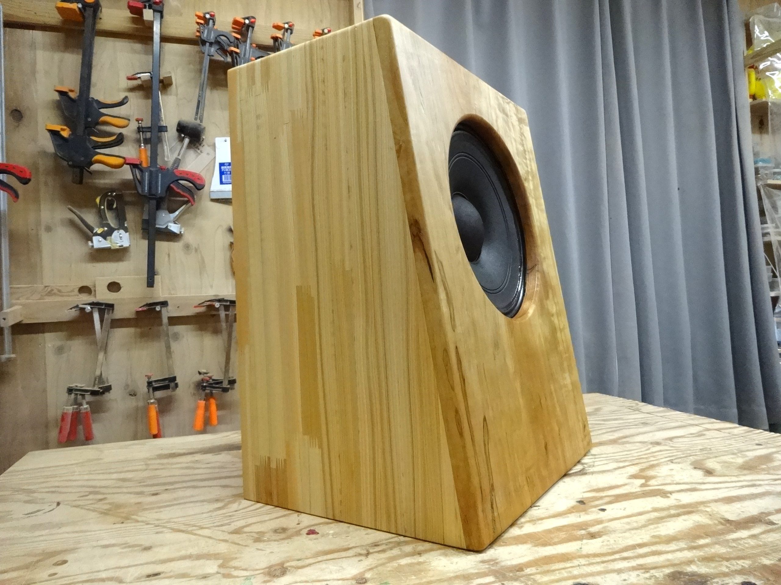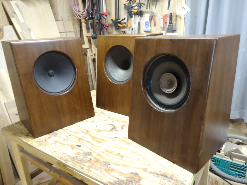 フィールドの方はバッフル板はビーチ(ブナ)無垢材t17mm、他は赤松集成材t12mm。WATCO OIL ナチュラル仕上げです。