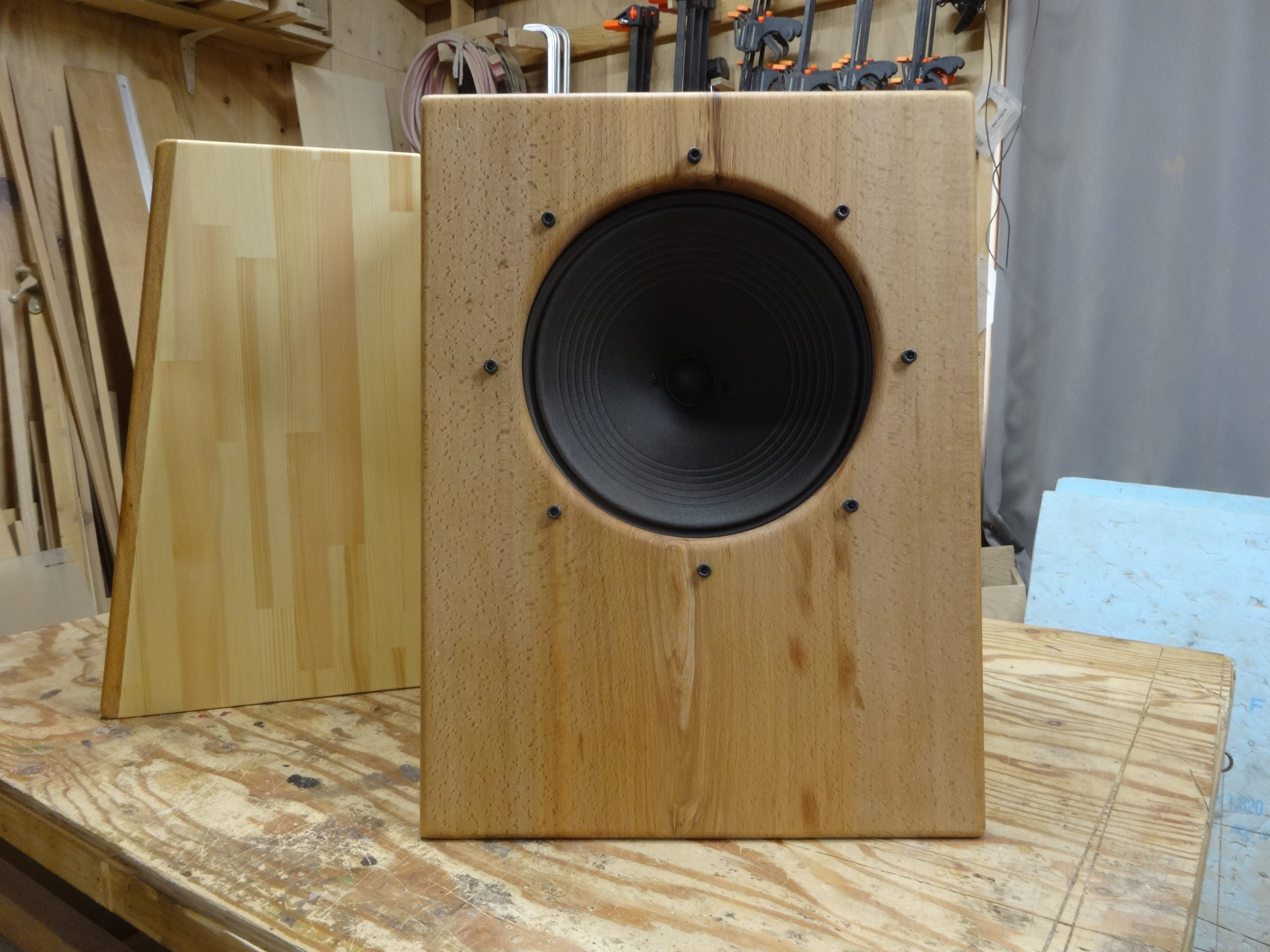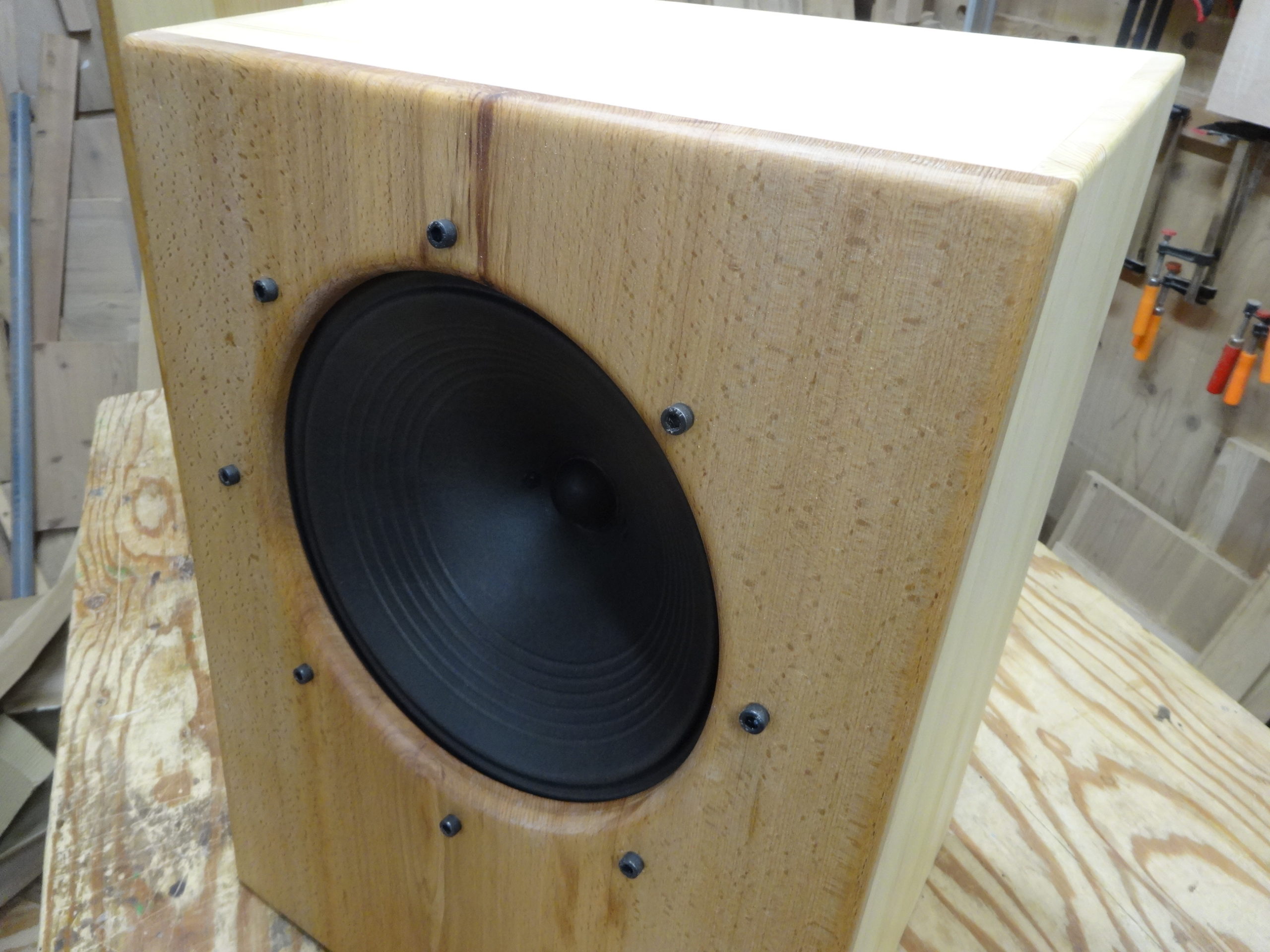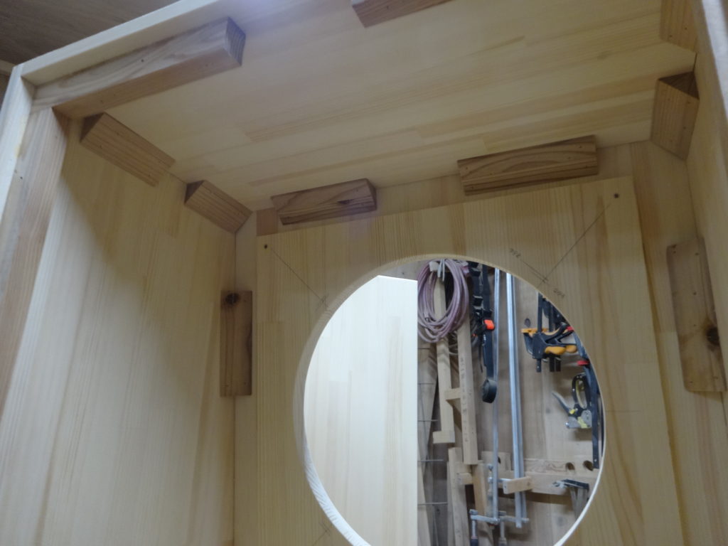 フィールドの方はバッフル板はビーチ(ブナ)無垢材t17mm、他は赤松集成材t12mm。WATCO OIL ナチュラル仕上げです。