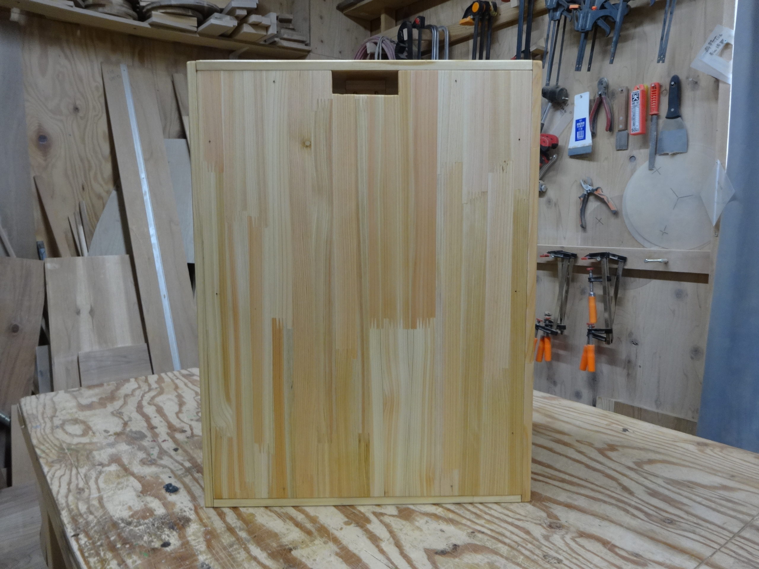 更に見た目に良いかと思います。 天地側板はヒノキ集成材t12mm。