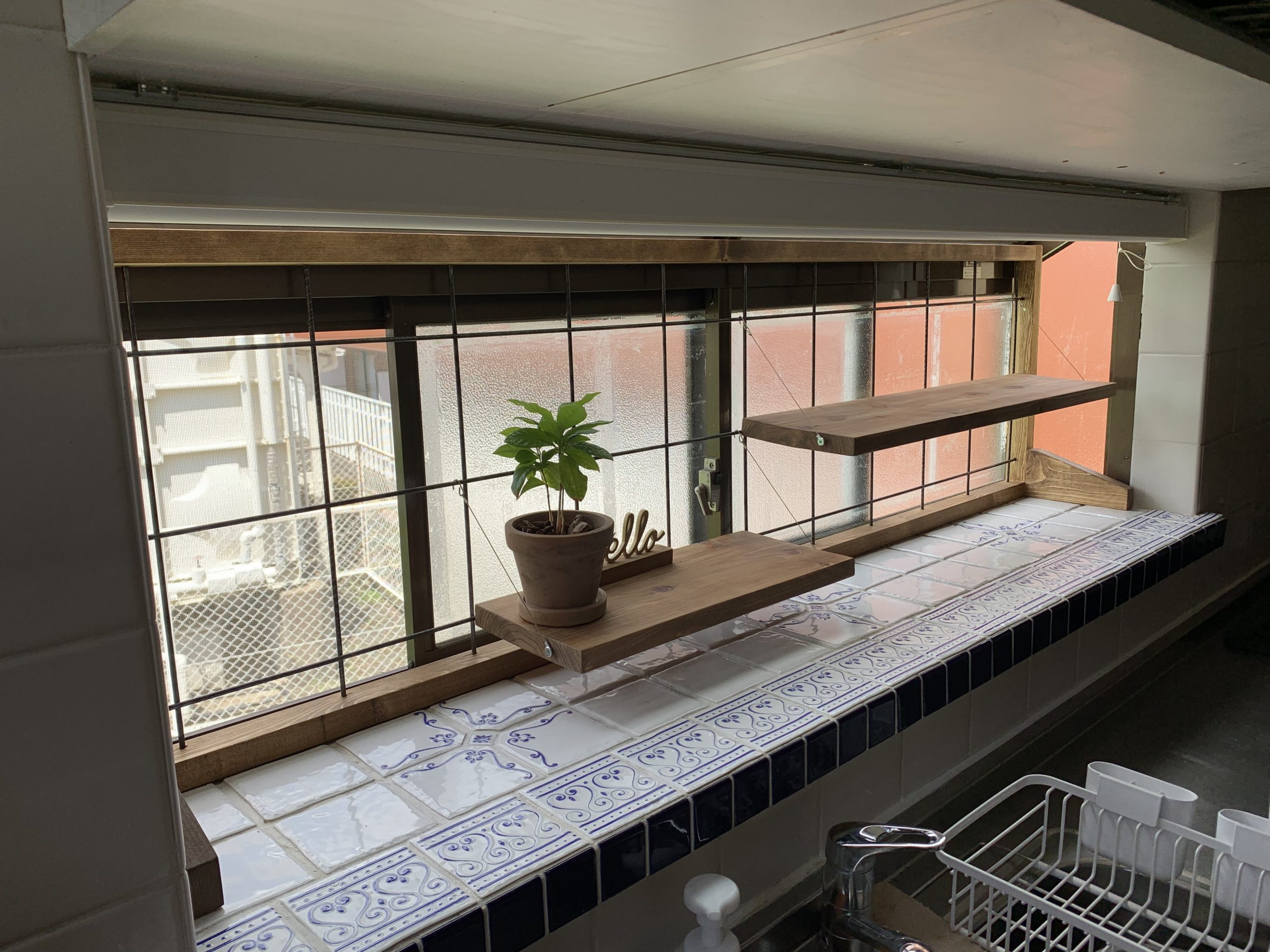 アイアン・メッシュを利用した、シェルフを製作し、配置。