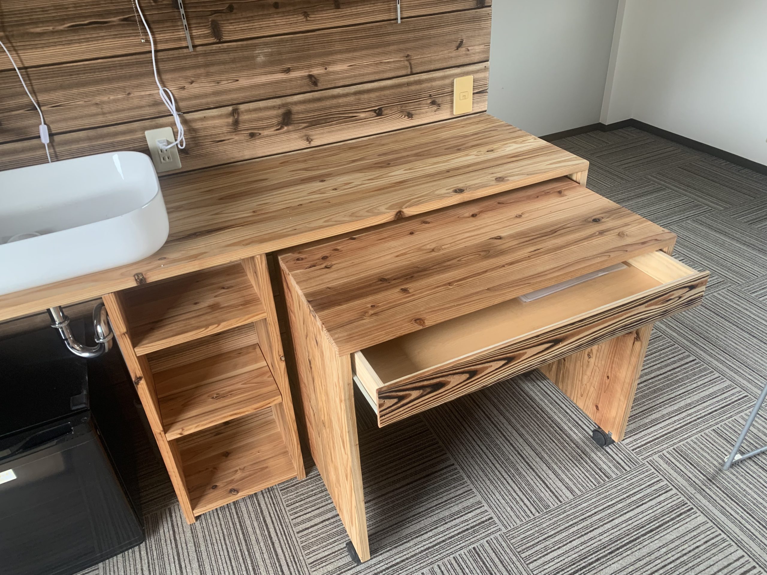 引き出しもあるので、必要最低限に色々と使い勝手が良いかと思います。