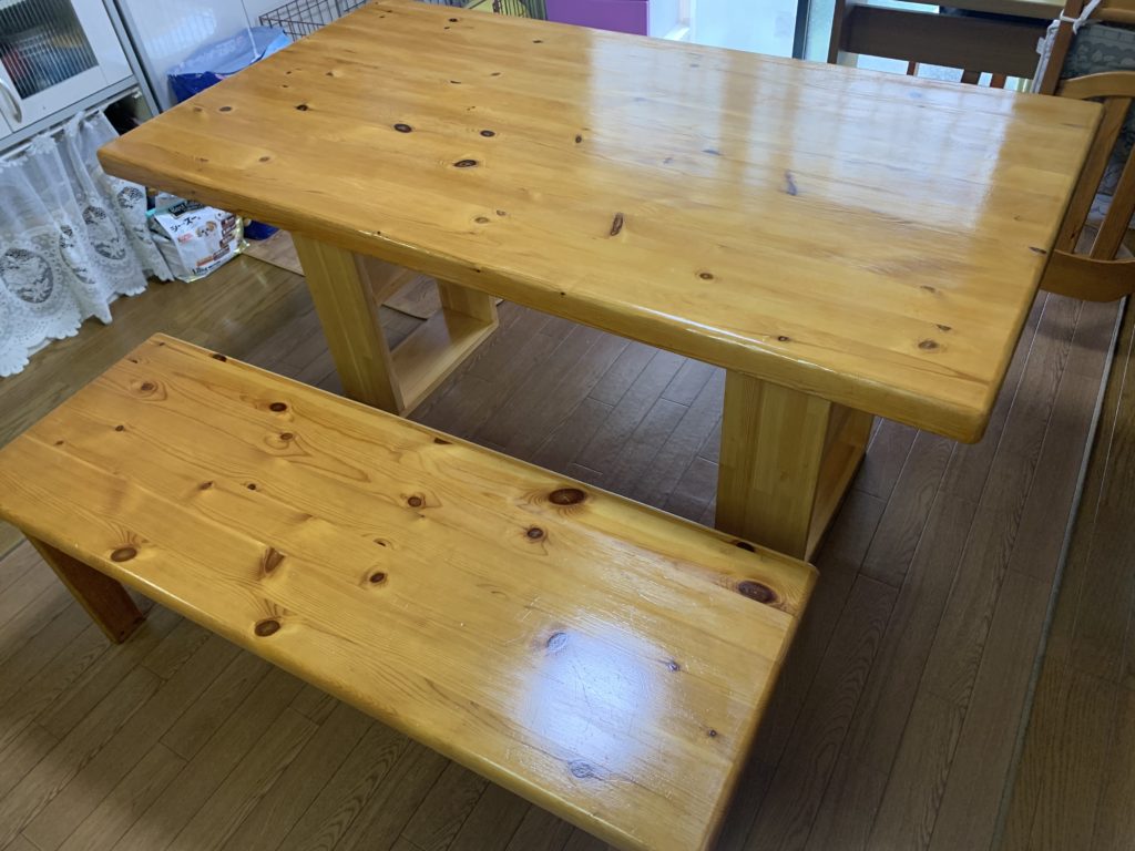 これを見られた別のお客様が、テーブルの補修+ベンチの製作を依頼いただきました。